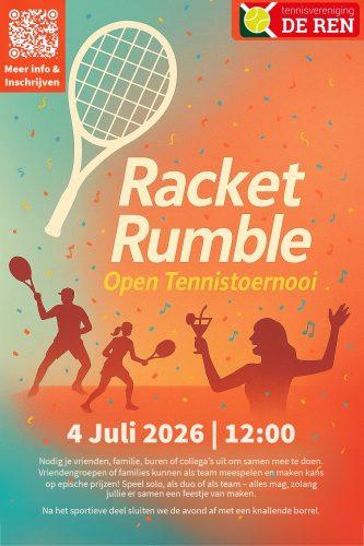 Let op! De datum is anders dan voorheen op de jaarkalender gecommuniceerd! Racket Rumble is dit jaar op 4 juli!